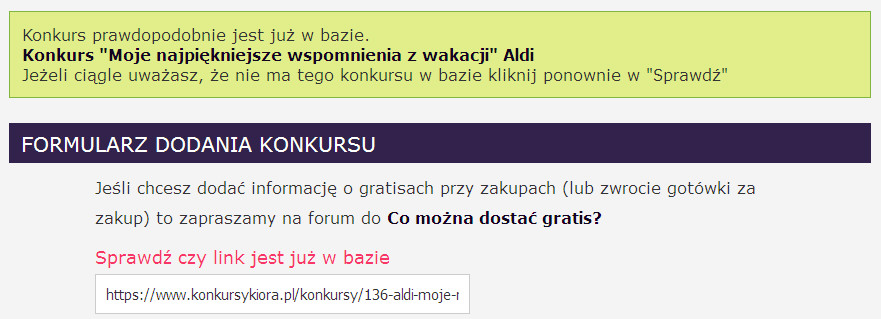 W pierwszym kroku dodawania konkursu pewne rzeczy są usuwane np http, https, www, utm_source etc tylko po to by już na tym etapie odrzucić większość zgłoszeń jeśli są w bazie... Wyświetl w wątku >>