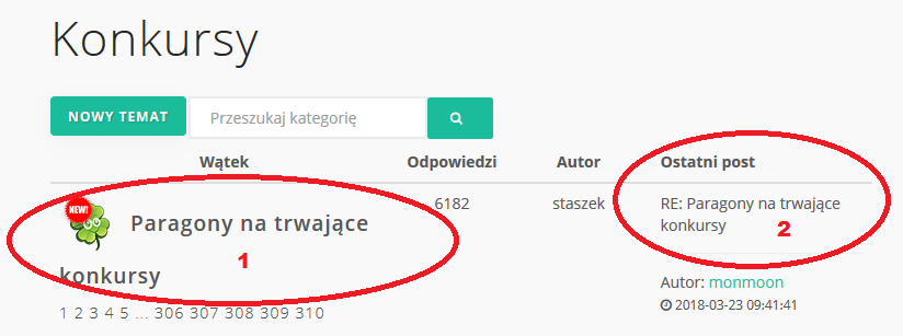 1 zawsze prowadzi na 1szą stronę, 2 zawsze do ostatniego wpisu (tak jak z boxa "Na forum")