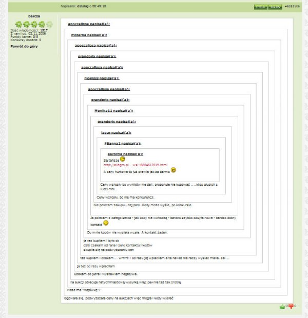 wypadałoby aby osoby cytujące nie cytowały zawsze całych poprzednich wiadomości tylko konkretne fragmenty...