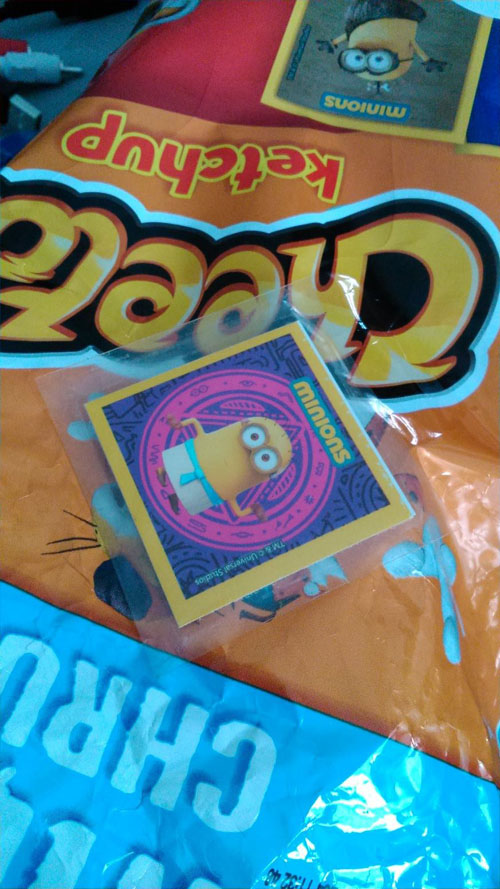 Trafiła nam się druga naklejka w Cheetosach kupionych w Biedronce. UWAGA! Obie były w opakowaniach bez informacji o konkursie.