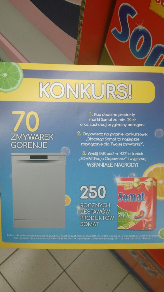 Był już ktos po Somat? Ja właśnie wróciłam, tabletek w Biedrze od zatrzęsienia...szkoda, że nie firmy Somat emotka  Z Somat były tylko pakowane po 3 tabletki do czyszczenia zmywarek i tyle (cena ok 5,5)