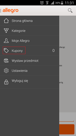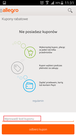 Wchodzisz w "Kupony" i wyświetla się takie okienko: