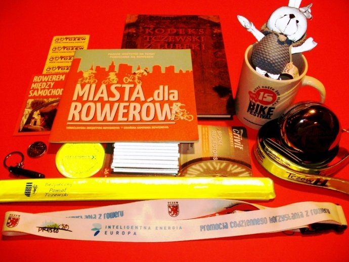 Główną i najważniejszą nagrodą za I miejsce jest atrakcyjny zestaw upominkowych gadżetów o wartości ok. 150 zł, które są związane z Tczewem oraz bezpieczną jazdą na rowerze. Dalsze miejsca czyli drugie, trzecie, czwarte i piąte – są nagradzane jedną parą odblasków. Organizator nie wysyła nagród pocztą. Można je będzie odebrać osobiście w miejscu i terminie wskazanym w następnym komunikacie, lub osobiście w Fabryce Sztuk na portierni do 31 stycznia br. Nie odebrane nagrody po tej dacie ulegają przepadkowi i zasilą fundusz nagród innych imprez.