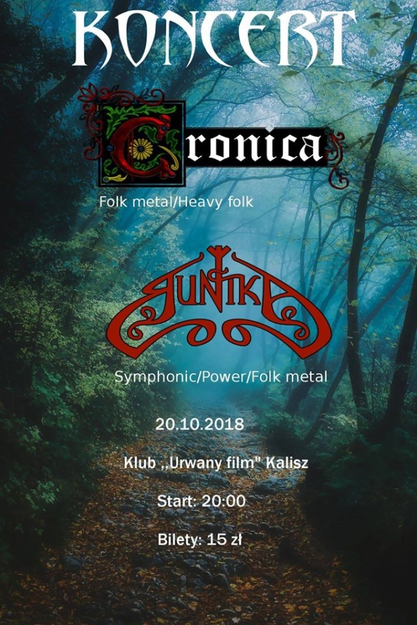 2 podwójne zaproszenia na koncert Cronica, który odbędzie się 20.10.2018 w Kaliszu - Pub Urwany Film.