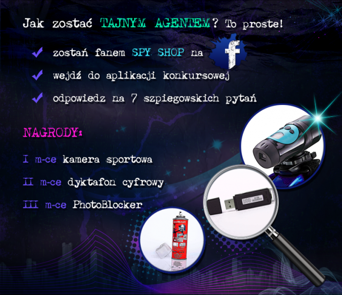 Interesujesz się gadżetami szpiegowskimi? Śledzisz nowinki techniczne? Weź udział konkursie, odpowiedz na kilka prostych pytań i wygraj jeden z popularnych gadżetów szpiegowskich.