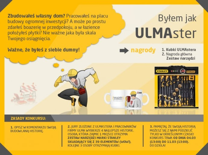 Opisz Nam swoją przygodę budowlaną i wygraj zestaw narzędzi oraz kubki z podobizną ULMAstera.