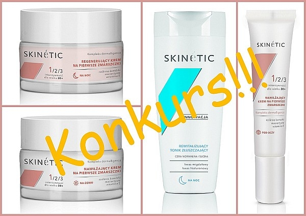 3 zestawy na które składają się: kosmetyki Skinétic seria 30+(krem na dzień, krem na noc, krem pod oczy) oraz tonik rewitalizujący Skinétic