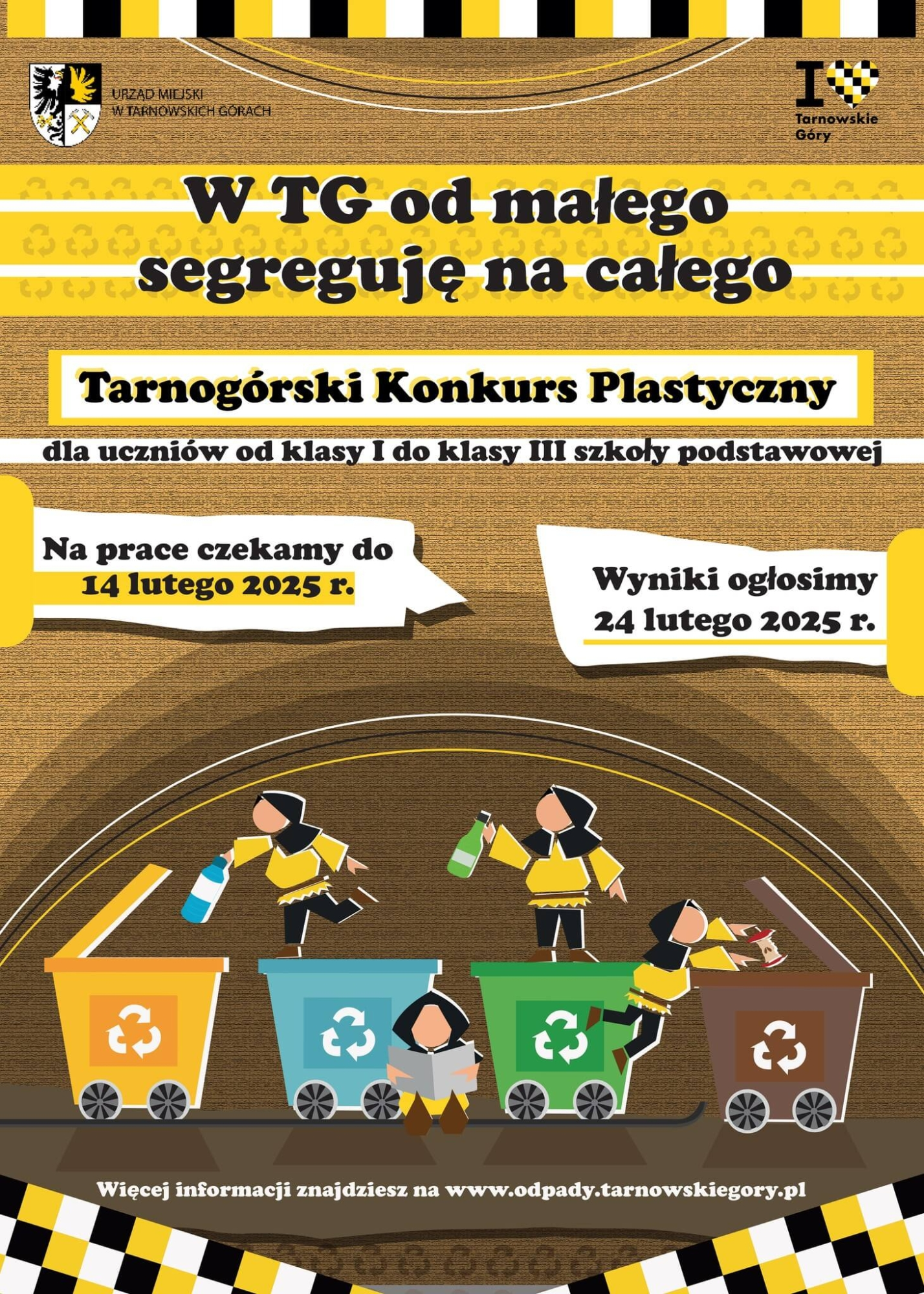 Wystarczy dostarczyć pracę do 14 lutego 2025 roku na adres Urzędu Miejskiego w Tarnowskich Górach – Wydział Gospodarki Miejskiej, ul. Henryka Sienkiewicza 2, 42-600 Tarnowskie Góry. Na kopercie należy napisać: „W TG od małego segreguję na całego.” . Każda praca powinna zawierać odpowiedni opis na odwrocie oraz niezbędne załączniki. Szczegółowe informacje oraz formularze zgłoszeniowe dostępne są w regulaminie konkursu poniżej.