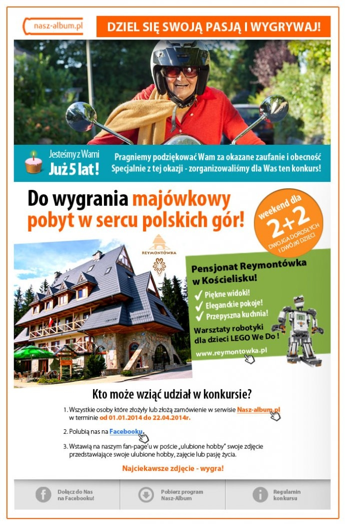 a) złożeniu zamówienia na foto-produkt w serwisie nasz-album.pl w terminie od 01.01.2014r.- do 22.04.2014r.