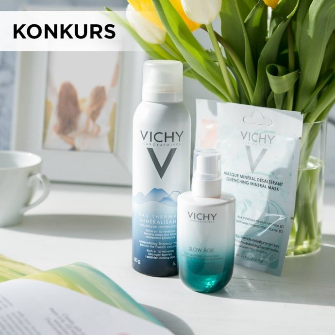 5 zestawów -Slow Age fluid (50ml), Woda Termalna (150ml), 2x Maska Mineralna Vichy (2x6ml)o wartości pojedynczego zestawu 138 zł.