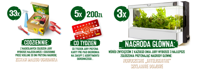 - Nagroda główna w postaci Nowoczesnej szklarni domowej o wartości 1500,00 zł złotych brutto