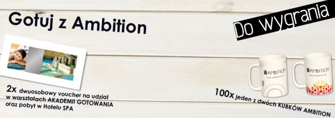 Wystarczy, że jednorazowo kupisz dowolne produkty marki AMBITION za minimum 50zł i w kilku prostych krokach wyślesz nam przepis na swoje popisowe danie wraz ze zdjęciem.