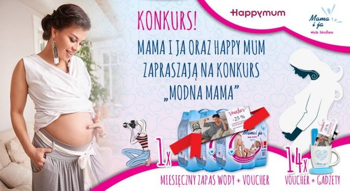 1 miejsce - miesięczny zapas wody Mama i ja + voucher 25% rabatu na zakupy w salonach Happy Mum