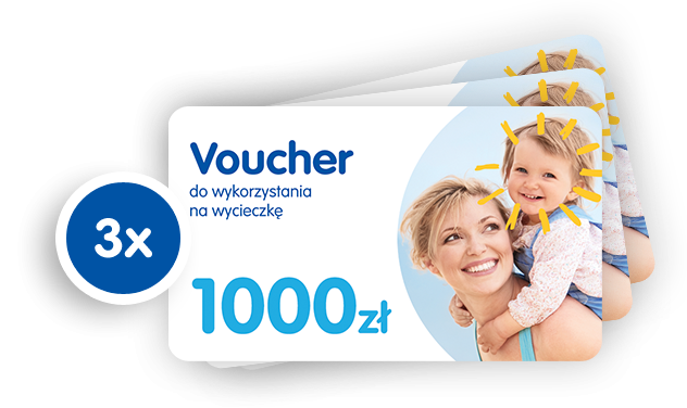 3x voucher 1000zł do wykorzystania na wycieczkę
