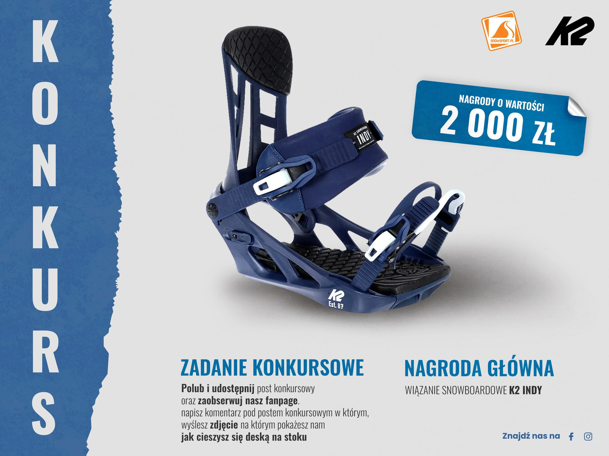 Polub i udostępnij post konkursowy, zaobserwuj nasz fanpage oraz wstaw zdjęcie w komentarzu na którym, pokażesz jak cieszysz się deską na stoku.