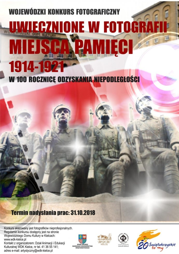 Celem konkursu jest przedstawienie miejsc pamięci z okresu I Wojny Światowej, wojny polsko – bolszewickiej oraz osób związanych z tymi wydarzeniami. Osoby zainteresowane zagadnieniami historycznymi dotyczącymi wydarzeń z tamtego okresu, które miały miejsce na teranie naszego województwa mogą wysłać swoje fotografie na adres mailowy: artystyczny@wdk-kielce.pl. Szczegółowy regulamin konkursu oraz karty zgłoszeń dostępne w załączniku.