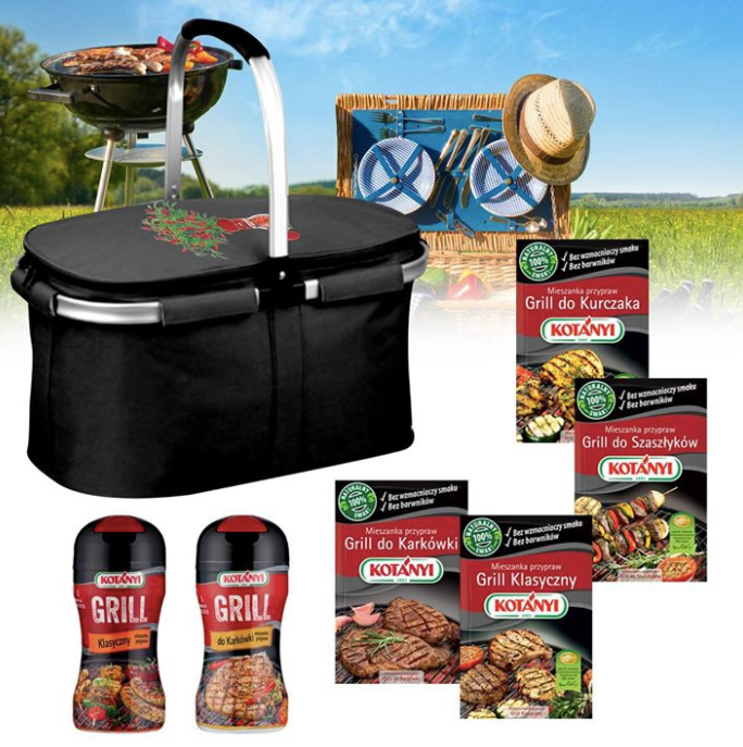 100x zestaw grillowy (kosze grillowo-piknikowe oraz przyprawy grillowe Kotanyi), każdy zestaw o wartości 100 zł brutto