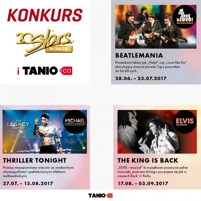 Jeśli chcesz wziąć udział w niezwykłym show Stars in Concert i zobaczyć na żywo Beatelsów, Michaela Jacksona lub Elvisa Presleya, weź udział w naszym konkursie.