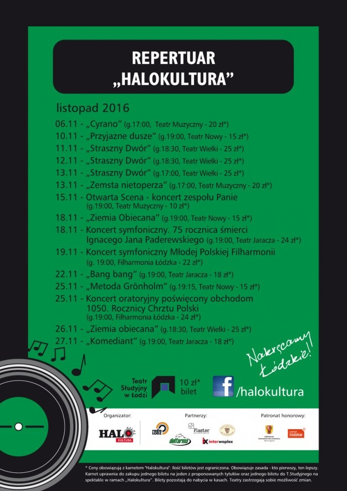 Wystarczy, że wyślecie maila na adres konkurs@plasterlodzki.pl. W temacie maila wpiszecie "Halokultura", w treści podajcie swoje imię i nazwisko. Zabawę zakończymy 1 listopada, o godz. 22. Laureatów konkursu powiadomimy o wygranej drogą mailową. Zaproszenie otrzyma 10 pierwszych zgłoszeń (każda zgłoszona osoba otrzyma 2 karnety!).