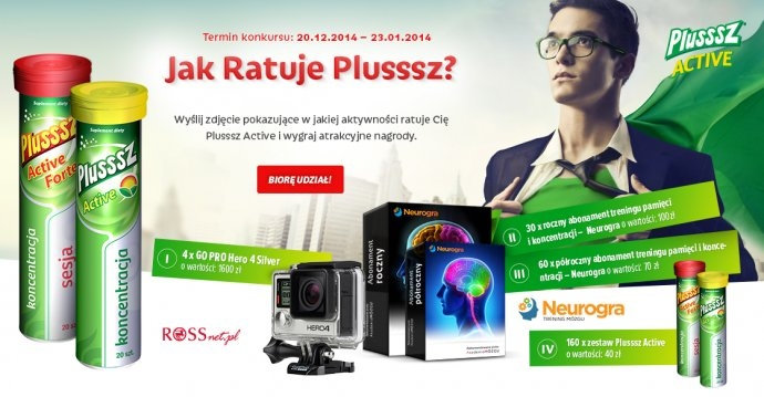 Kup dowolne opakowanie produktu z linii Plusssz Active w drogerii Rossmann w czasie trwania konkursu i zachowaj paragon fiskalny oraz niefiskalny.