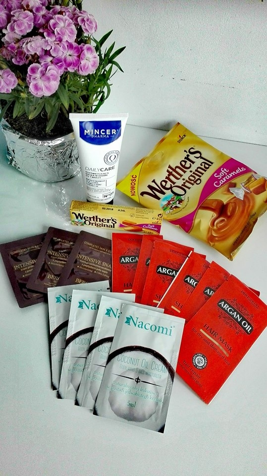 rozświetlająca maska od Mincer Pharma, pyszne Werthers Original oraz probki kosmetyków.