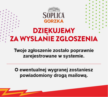 Produkt konkursowy: Soplica Gorzka (Soplica Gorzka oryginalna, Soplica Gorzka Niezłe Ziółko z Chmielem, Soplica Gorzka Koleżeńska z orzeszkami Cola, Soplica Gorzka figlarna z figą, Soplica Gorzka z miętą) o dowolnej pojemności.