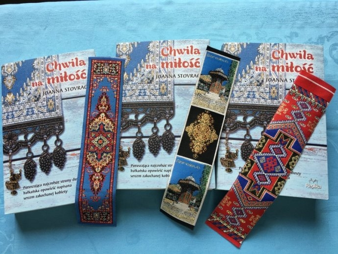 trzy książki Joanny Stovrag pt. "Chwila na miłość" wraz z zakładkami