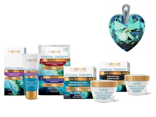zestawy kosmetyków z linii Mineral Therapy. W skład zestawu wchodzi krem na dzień, krem na noc, krem pod oczy, maseczka oraz zawieszka-serduszko Swarovskiego.