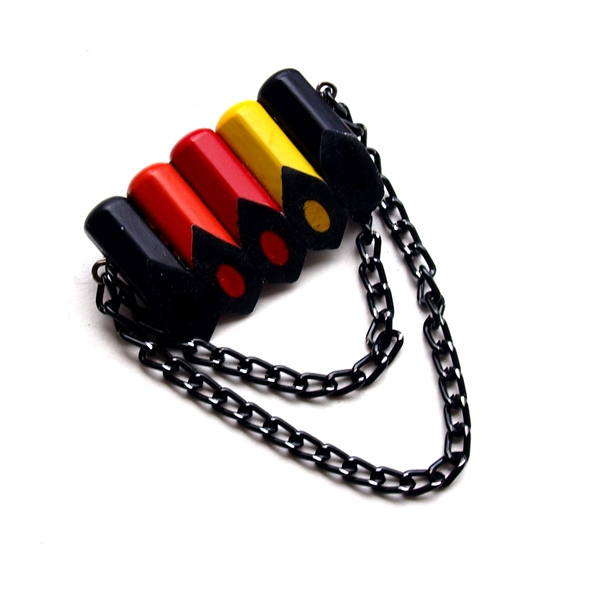 Niewielka broszka wykonana z końcówek ołówkowych kredek i aluminiowego łańcuszka o wymiarach ok. 4x3cm to znakomity upcyclingowy dodatek modowy!