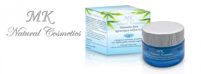 ** naturalny krem regenerująco–odżywczy marki MK Natural Cosmetics z kolagenem roślinnym, witaminami oraz olejami jojoba, avocado i arganowym. Polecamy dla każdego rodzaju skóry, również do skóry wrażliwej i skłonnej do alergii.