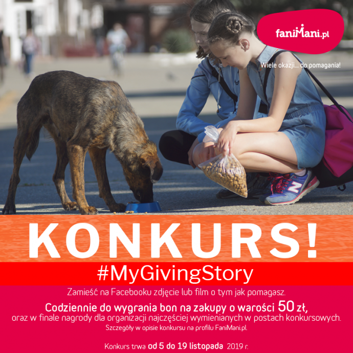 Podziel się swoją historią na wydarzeniu Konkurs #MyGivingStory: Pokaż jak pomagasz! dodając hasztag #MyGivingStory oraz oznaczając fanpage GivingTuesday Polska i FaniMani.pl.