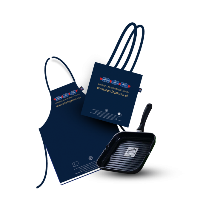 Patelnia grillowa + torba na zakupy + fartuch kucharski
