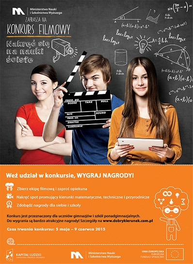 Nakręć 30-sekundowy spot promujący nauki ścisłe, wrzuć film na YouTube i wyślij link za pomocą formularza dostępnego na stronie dobrykierunek.com.pl