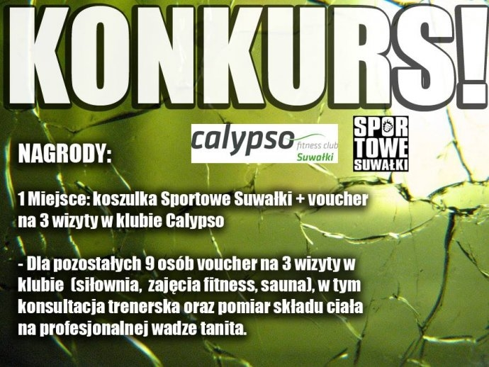 1 Miejsce: koszulka Sportowe Suwałki + voucher na 3 wizyty w klubie Calypso