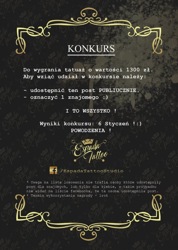 - Musisz polubić stronę Studio Tatuażu Espada na Fejsie