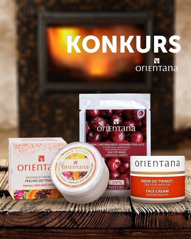5x zestaw świąteczny od Orientana, w skład którego wchodzi naturalny kremowy peeling Papaja i żeńszeń indyjski, krem do twarzy żeńszeń indyjski,maska z naturalnego jedwabiu pod oczy Czereśnia Japońska (wartość jednej nagrody to 80,97 zł brutto)