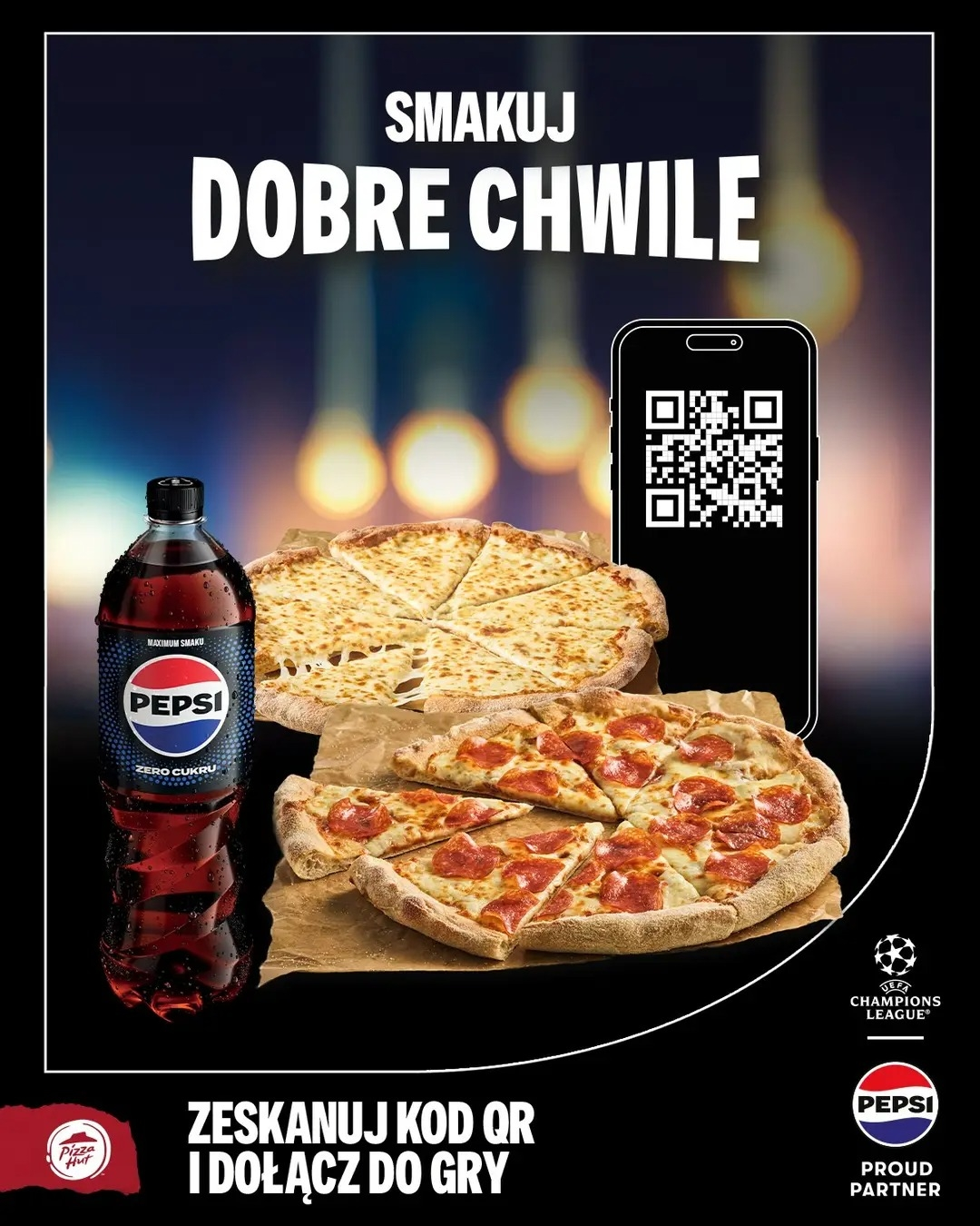 - Okres promocji: 1 z 250 kodów rabatowych o wartości 25% na zamówienie na wynos lub w dostawie w Pizza Hut, 1 z 250 kodów rabatowych o wartości 20% na zamówienie na wynos lub w dostawie w Pizza Hut, 1 z 500 kodów rabatowych o wartości 10% na zamówienie na wynos lub w dostawie w Pizza Hut. Wszystkie kody rabatowe wymagają dokonania zamówienia na kwotę co najmniej 50 zł. Zamówienie musi zostać złożone za pośrednictwem strony internetowej Pizza Hut Polska lub aplikacji