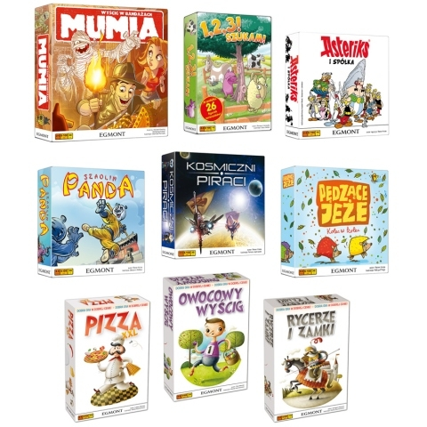 9 gier, które ostatnimi czasy pojawiły się w sklepach, oczywiście wszystkie pod naszym patronatem. Są to: Mumia, 1,2,3 szukam!, Panda, Asterix i spółka, Kosmiczni Piraci, Pędzące jeże, Pizza XXL, Rycerze i Zamki, Owocowy wyścig