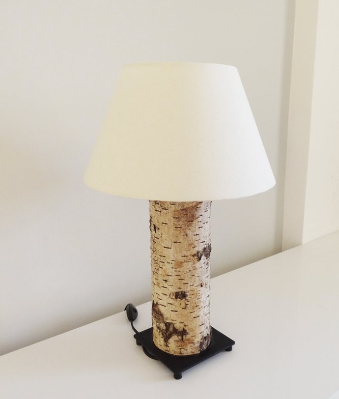 ekologicznie stylowa i elegancka lampka nocna wykonana z pnia brzozy z abażurem w kolorze kremowym marki Kolorum!