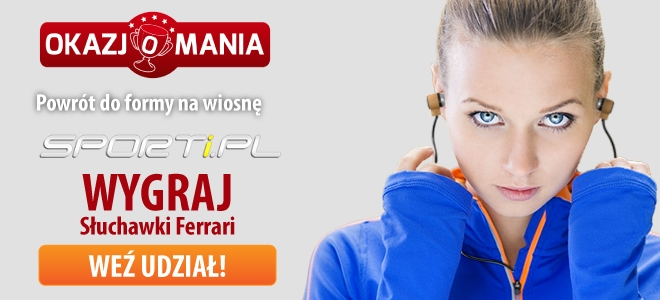 To już piąty raz, jak Porównywarka Cen Okazje.info daje szansę wygrania cennej nagrody. Tym razem będą to komfortowe słuchawki firm Ferrari i Logic3 o wartości 800 zł dla tych, którzy wezmą udział w Okazjomanii. Jak połączyć ze sobą wiosnę, muzykę i utratę zbędnych kilogramów? Jak stać się właścicielem niespodzianki, którą sponsoruje internetowy sklep sportowo-rowerowy sporti.pl?