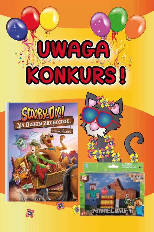 dwa zestawy upominkowe złożone z: zestawu Minecraft Overworld Survival Pack Fully Articulated oraz DVD Scooby-Doo! Na Dzikim Zachodzie