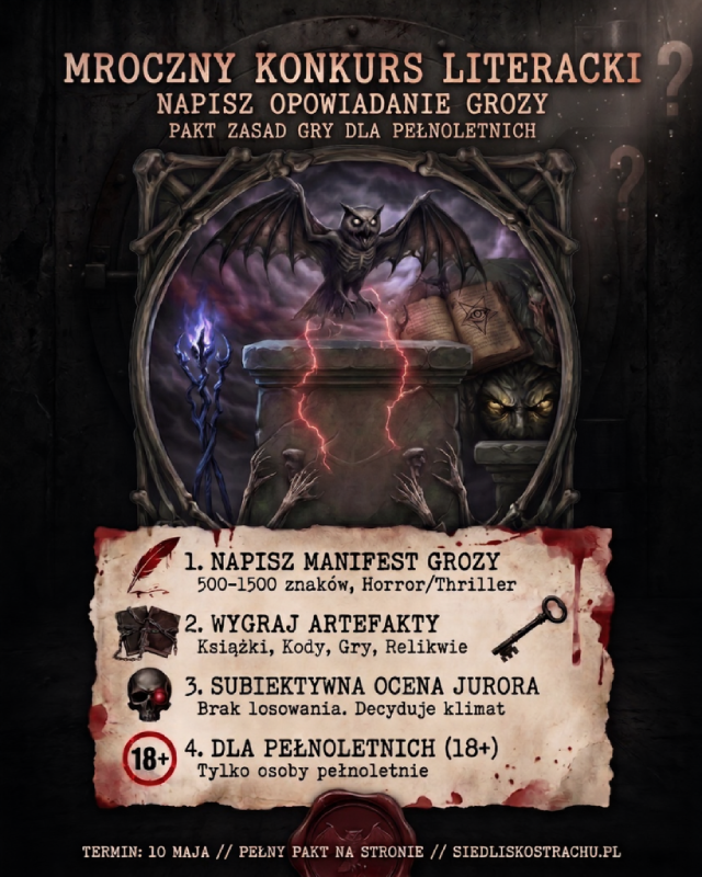 Nagroda Rzeczowa: Powieści mistrzów polskiej grozy (m.in. Marek Krajewski, Maciej Rożen, Jacek Łukawski).