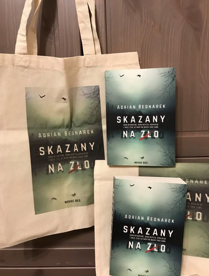 dwa egzemplarze "Skazanego na zło" z podpisem autora i dedykacją oraz dwie torby pamiątkowe w pakiecie