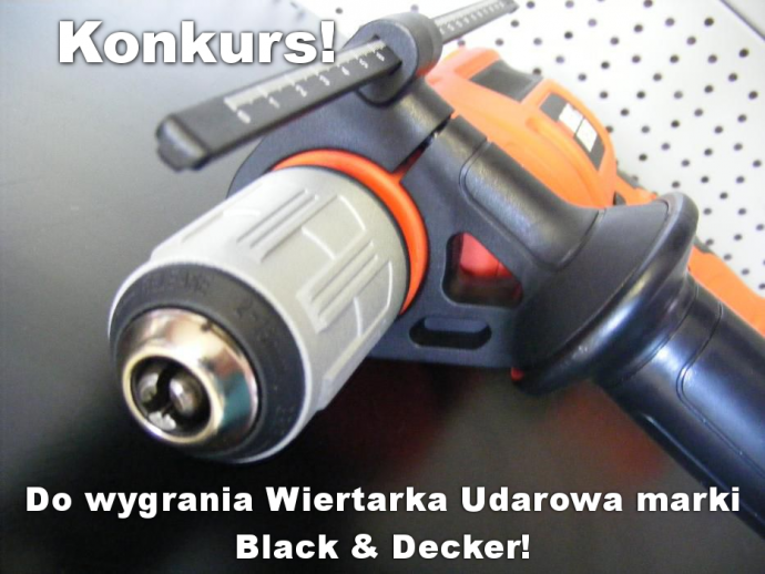 1x Wiertarka udarowa firmy Black&Decker o mocy 650 W wraz z kufrem transportowym - o wartości 200 zł.