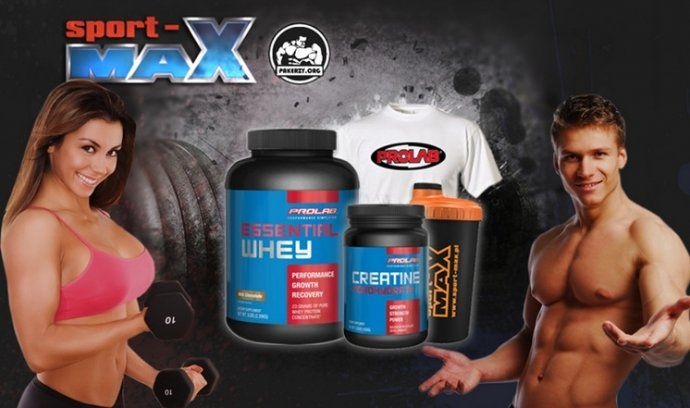 zestaw produktów o wartości 340zł: Białko Prolab Essential Whey 2,27kg, Prolab Kreatyna 600g, Koszulka, Shaker Sport-Max, Zestaw magazynów.