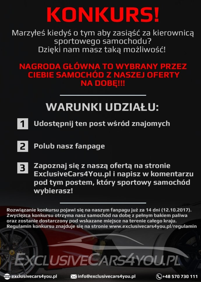 Konkurs "Sportowy samochód na dzień"