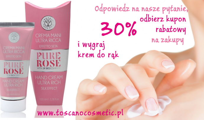 Wygraj w naszym konkursie Odżywczy krem do rąk Pure Rose firmy Erbario Toscano oraz 30% zniżki na zakupy w sklepie toscanocosmetic.pl do końca roku!!