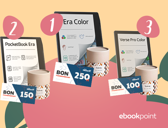 - 3 miejsce : czytnik Pocketbook Verse Pro Color + zestaw herbat marki Teabag + bon o wartości 100 zł do księgarni ebookpoint.pl