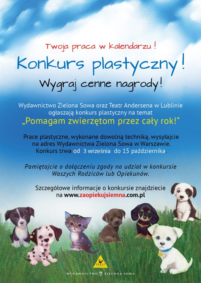 Wśród nadesłanych prac wybierzemy 12 najpiękniejszych, które nagrodzimy "Reksem, szczeniakiem z wakacji", "Kalendarzem szkolnym", a także podwójnymi wejściówkami do Teatru Andersena w Lublinie (termin do ustalenia).