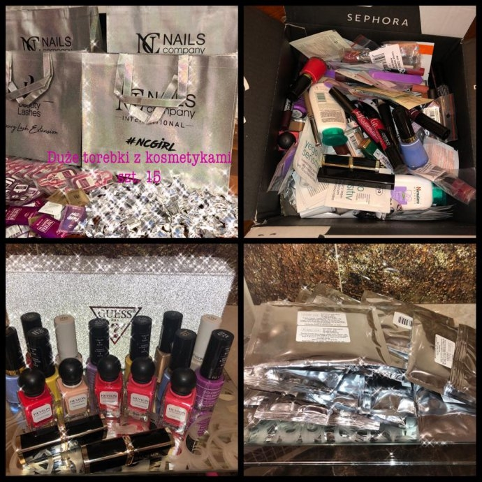 15szt dużych torebek niespodzianek z kosmetykami , 2 dodatkowe zestawy jeden z paletką Douglas drugi perfumy Victoria’s Secret. Łącznie 17 nagród.